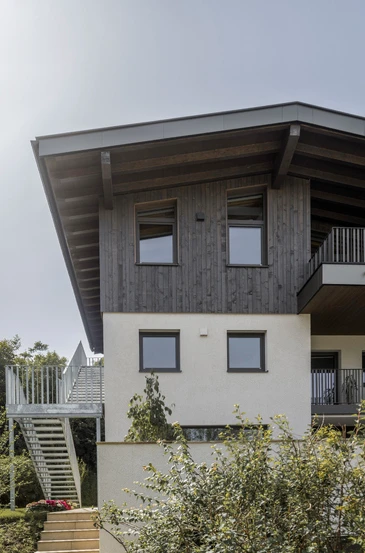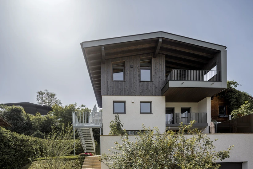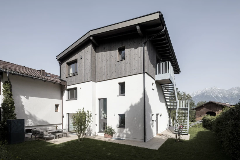 Aufstockung eines Einfamilienwohnhauses im Raum InnsbruckAusgeführte LeistungenFachplanung HolzbauBauweiseHolzrahmenbauweiseFertigstellung 2023Fotos (c) Matthias Sedlak